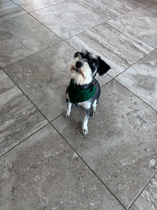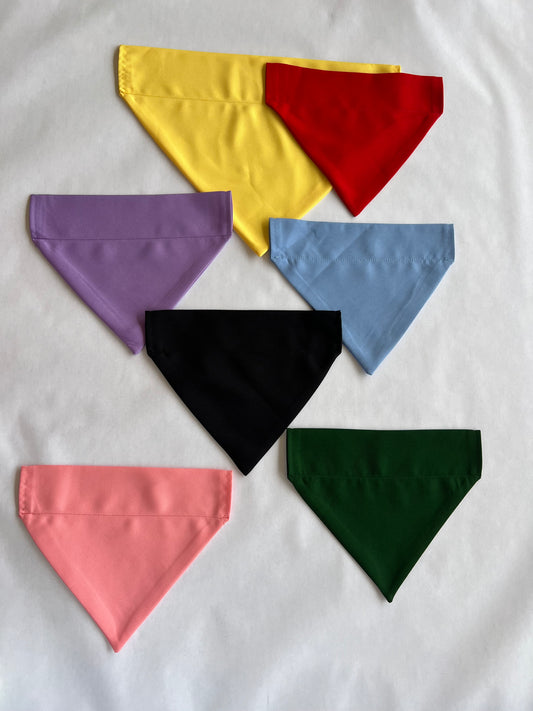 Our over the collar pet bandanas are great for walks! Simply slide your pet's collar through the opening at the top of the bandana and you're all set! No more having to worry about your bandana coming untied while on a walk.
